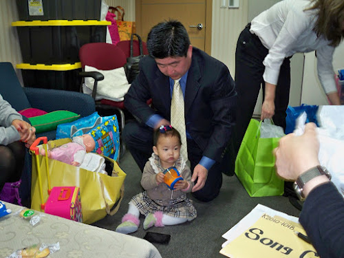 Things at the agency went fine. The foster family showered her with so many gifts it is unbelievable. We haven't been able to go through everything just yet. The foster grandmother made Mia so many clothes including some that she embroidered with her new Korean name Kwon Soon Mi. It is so obvious to us that she has been well taken care of and loved so much.